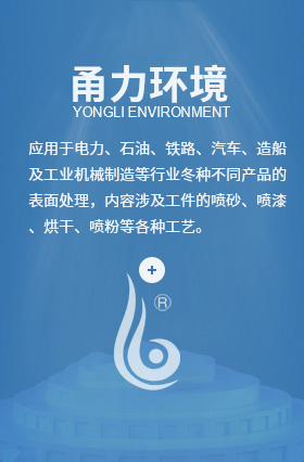 可廣泛適用于電力、石油、鐵路、汽車、造船及工業(yè)機(jī)械制造等行業(yè)冬種不同產(chǎn)品的表面處理,內(nèi)容涉及工件的噴砂、噴漆、烘干、噴粉等各種工藝。